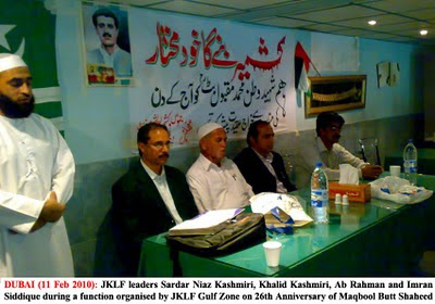 JKLF Supremo Aman Ullah Khan, Sardar Saghir, Secretary Information Dr Toqeer Gilani,, Head Armed Wing Raja Haqnawaz, Chief Organizer Sajid Siddiqui, Chairman SLF Raja Ghulam Mujtaba, Senior Leaders Sardar Shoaib, Abdul Hamid Butt, Hafiz Anwar Samavi, Khawaja Saif Din,Yousif Chaudhary, Sardar Rehman, Arshad Rathore and others expressed their deep grief and sorrow on the death of a great son of soil. Mr Aman Ullah Khan said that his death is a great loss to the Nation and offcourse to JKLF. He was a great compatriot, a consistent political worker and a brilliant manager.