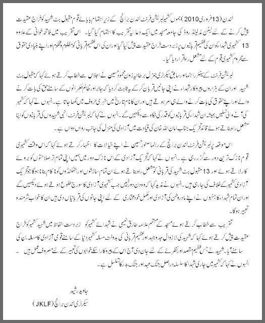 May his soul rest in peace. His untimly death is a great loss to JKLF, to Kashmir Freedom struggle and to the Kashmiri community living in UK.