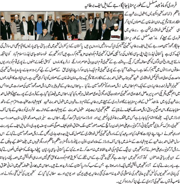 The Seminar was organized by British Zone JKLF and was facilitated by the prominent British peer Lord Nazir Ahmed. British peers and intellectuals who participated in the seminar expressed deep concerns over the human rights situation in Kashmir . The speakers and delegates at the seminar overall agreed and said that India and Pakistan should resolve their differences through dialogue but must involve Kashmiris in any kind of dialogue and let the Kashmiris make the final decision. Rich tributes were paid to the founder of the movement Shaheed Maqbool Butt on his 27th martyrdom anniversary.